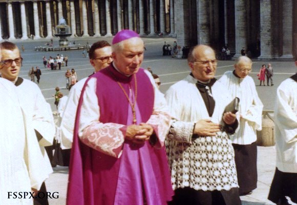 | Mons. Lefebvre durante o Concílio Vaticano II (Praça de S. Pedro - Vaticano) |
