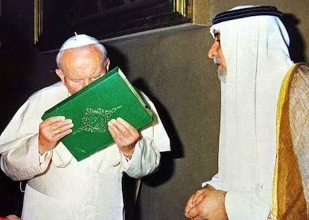| Um dos momentos mais demolidores na história da Igreja: João Paulo II beijando o Corão. |