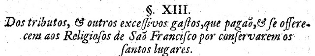 "Entre os inumeráveis Mártires, com que a Religião Seráfica tem ilustrado a Igreja Romana, não são de menor estimação os que tem padecido em Jerusalém: não só pelo lugar santo, em que padeceram, como também pelos atrozes tormentos, com que os martirizaram, pelo amor, e reverência, que aqueles lugares santos tiveram; pois pela sua conservação, e não os verem profanados, derramaram seu sangue, dando as vidas por Cristo.